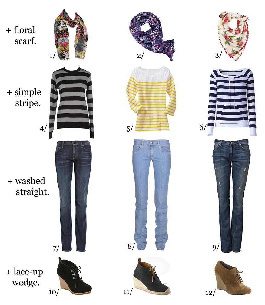 If you’ve ventured back into the stores lately, surely you’ve noticed that spring 2011 has already hit the racks. Most of us are still combing the sale racks in search of winter’s finest (hello, it’s snowing!), but I think it’s necessary to lighten up a bit on the layers in favor of one heavy wool camel coat instead. Right now I am seriously committed to horizontal striped tops. My New Year’s Resolution is to “simplify” in any way possible, and striped shirts match everything while adding a little French flair to any ensemble. I’m also committed to wearing heels at least one day per week to put a little more sass in my strut. A wedge is perfect for the girl who needs some added support (aka me), and right now wedge booties are cute as can be! Perhaps this week you should consider ditching the turtleneck for a boatneck and put some spring in your step too!
